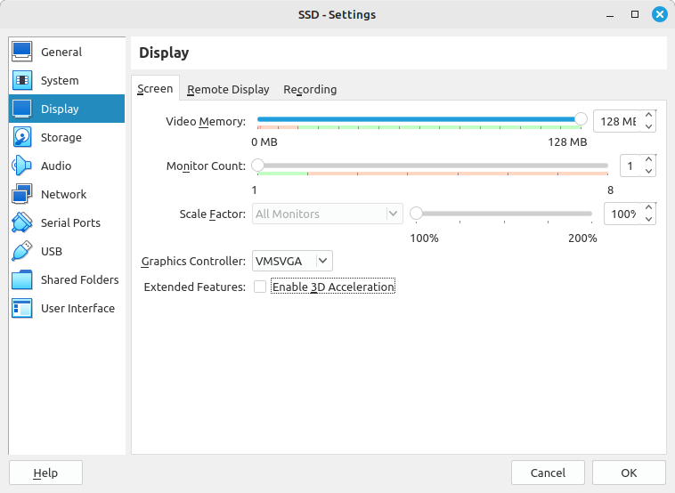 If available, enabling 3D acceleration, solves this issue. Note however that 3D acceleration can lead to issues with Webkit and GTK4 (see the previous paragraph).